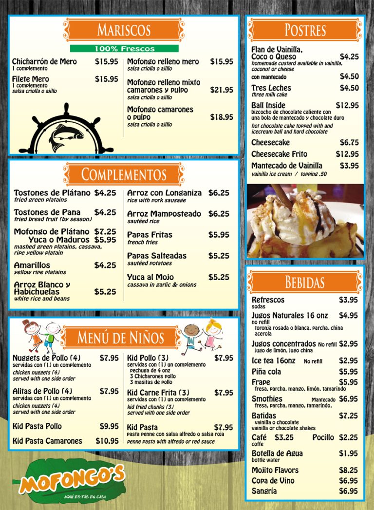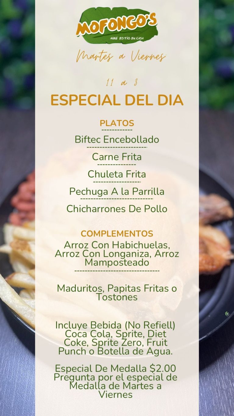 Mofongo’s es un restaurante de comida puertorriqueña en Carolina, contamos con platillos típicos de la región que deleitarán tu paladar. Nuestros sabrosos platos de comida boricua son confeccionados al momento, contamos con un extenso y variado menú, en el cual resalta nuestro platillo estrella: el mofongo; contáctanos al +1-787-762-5541 para reservar una mesa u ordena a domicilio a través de Uber Eats.